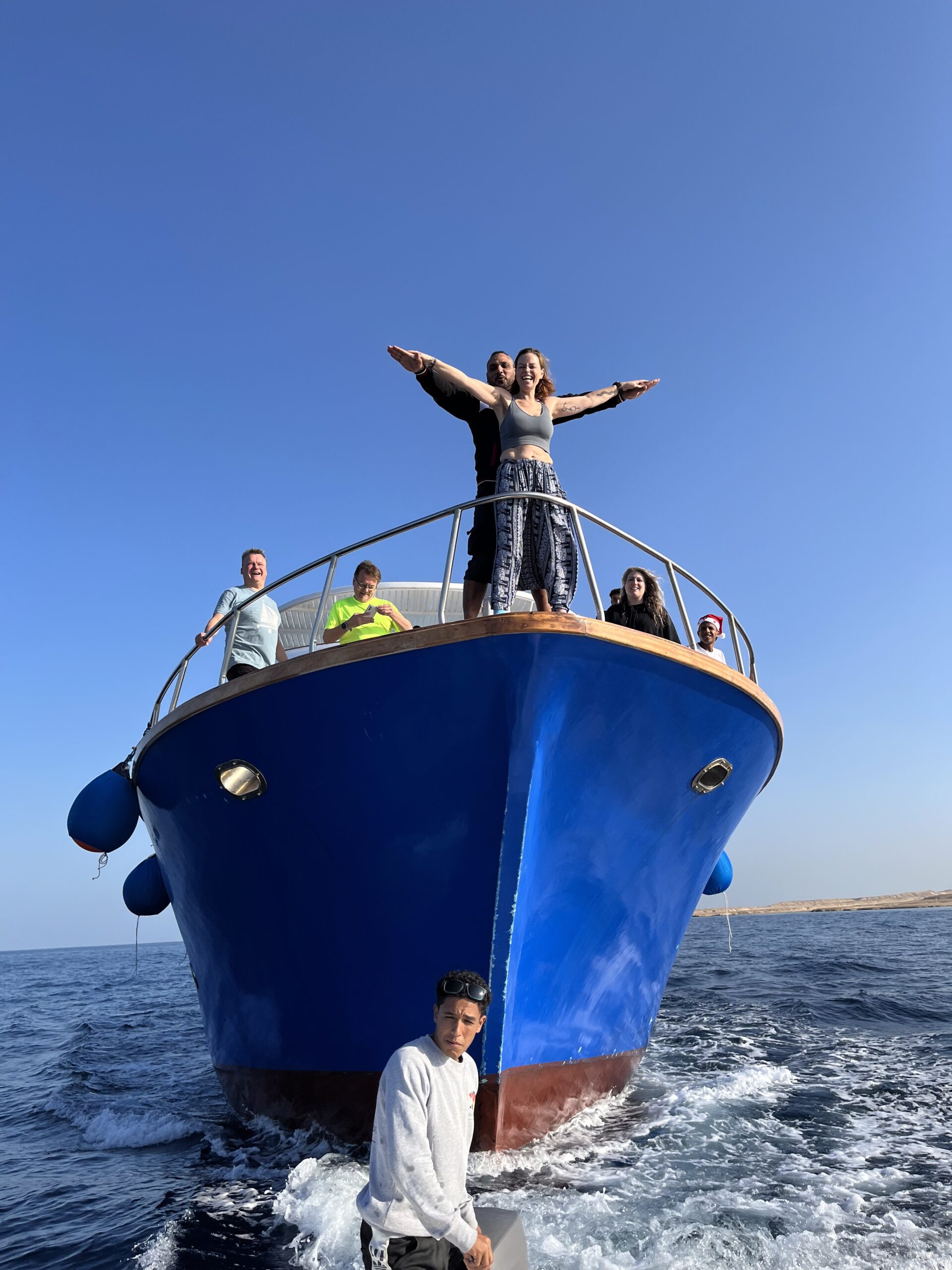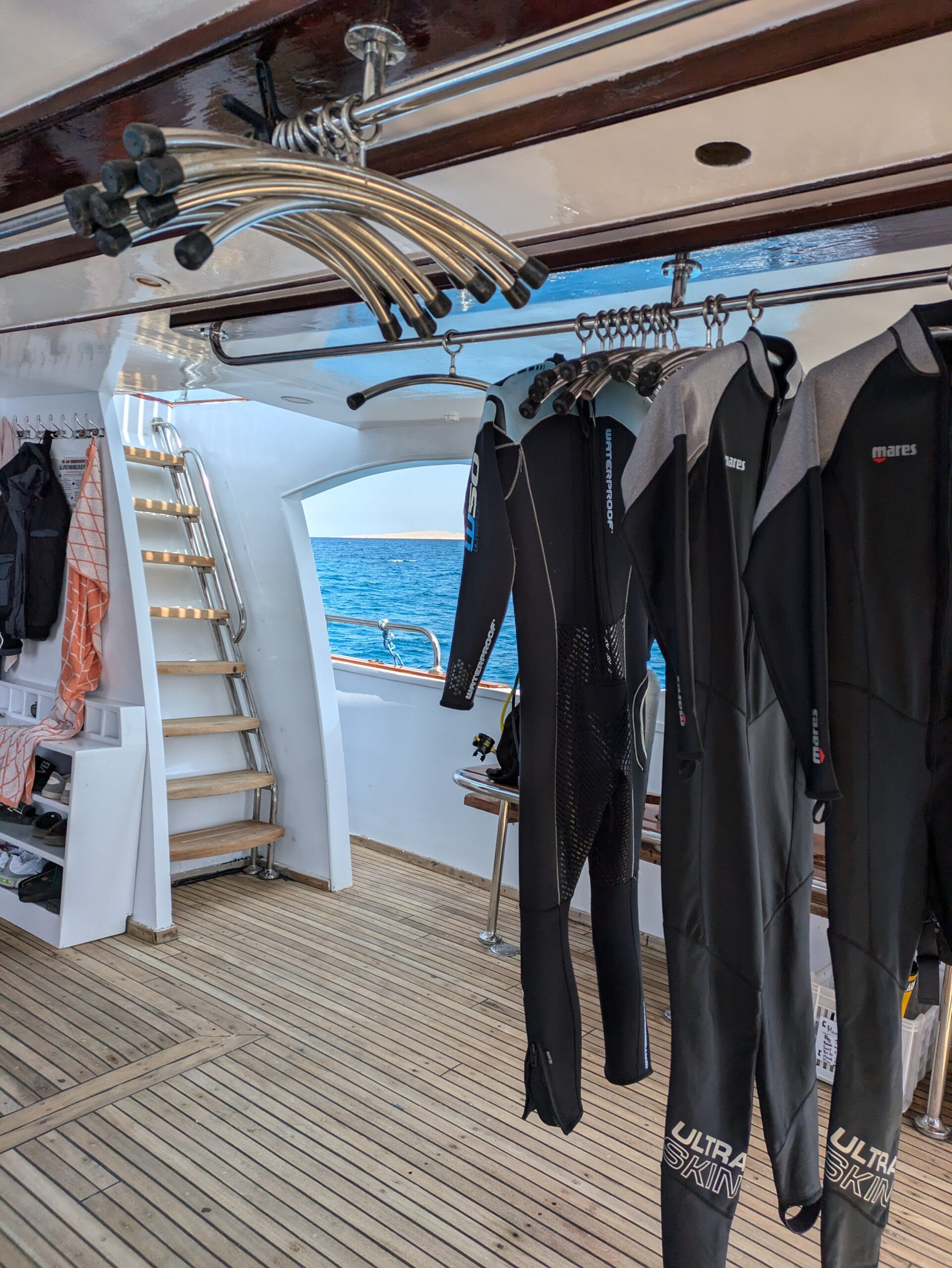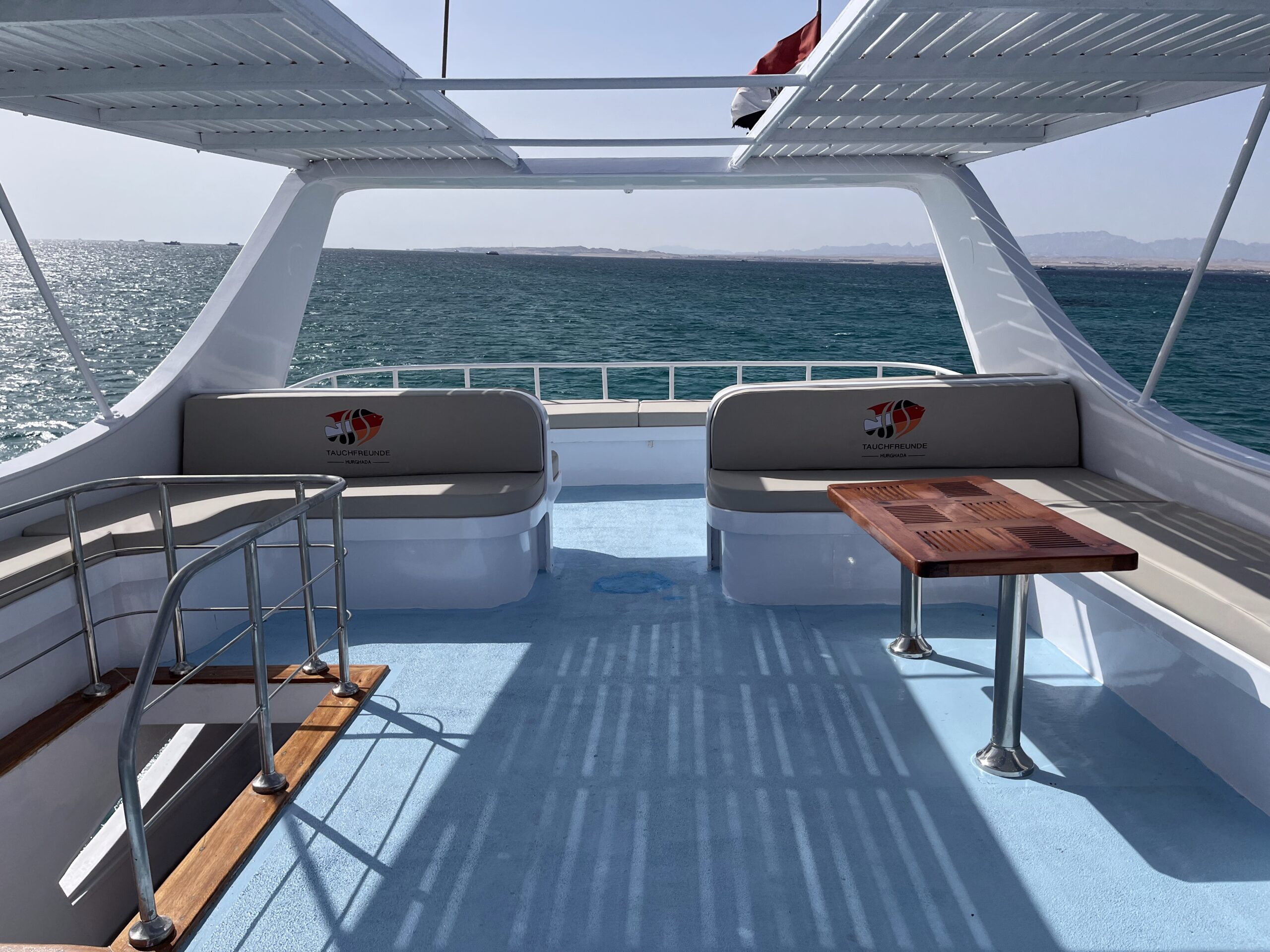 Auf dem Oberdeck findest du viel Platz zum Liegen, Sonnenbaden oder einfach zum Entspannen zwischen den Tauchgängen. Unser Boot bietet die perfekte Mischung aus Komfort, Sicherheit und Funktionalität – ideal für unvergessliche Taucherlebnisse im Roten Meer.